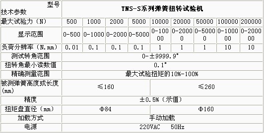 產(chǎn)品概述: TNS-SL系列彈簧扭轉(zhuǎn)試驗(yàn)機(jī)主要用于各種扭簧、蝸卷彈簧、彈簧元件和摩擦機(jī)構(gòu)的扭轉(zhuǎn)角、扭轉(zhuǎn)力矩的測試。 功能特點(diǎn): 該系列彈簧試驗(yàn)機(jī)的扭轉(zhuǎn)扭矩、角度為數(shù)字顯示、角度測量采用角位移傳感器(光電編碼器)、可以對扭矩傳感器的角位移量作自動修正、該扭轉(zhuǎn)試驗(yàn)機(jī)還具 有峰值保持、過載保護(hù)、剛度計(jì)算、結(jié)果打印、數(shù)據(jù)查詢等功能、手動加荷,進(jìn)口彈簧試驗(yàn)機(jī),左右旋隨意選擇、結(jié)構(gòu)緊湊,減震器彈簧疲勞試驗(yàn)機(jī),操作簡單,彈簧拉壓試驗(yàn)機(jī)檢定規(guī)程,檢測速度快、測量時試件水平放在兩扭矩盤之 間 技術(shù)參數(shù):